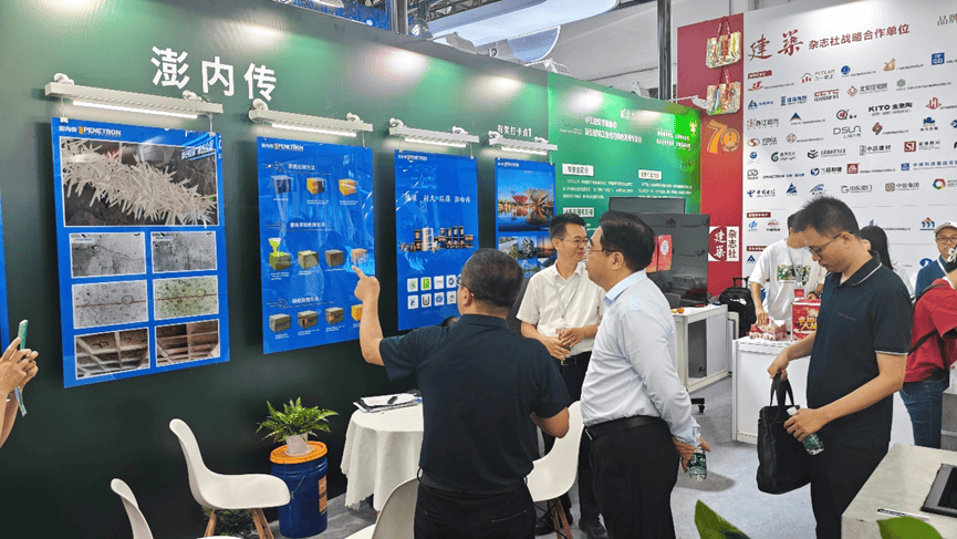 北京澎內(nèi)傳公司展出了全球領(lǐng)先的混凝土滲透結(jié)晶自愈合技術(shù)以及系統(tǒng)產(chǎn)品,展板上生動(dòng)形象的展現(xiàn)出滲透結(jié)晶的技術(shù)原理、電鏡下的結(jié)晶形貌和實(shí)效工程照片等;實(shí)物水池模型與試塊直觀地看到結(jié)晶自愈合后的功效。澎內(nèi)傳先進(jìn)的滲透結(jié)晶科技不僅能從根本上解決混凝土結(jié)構(gòu)的滲漏水頑疾,還能提高混凝土整體的耐久性,延長(zhǎng)結(jié)構(gòu)的使用壽命60年。產(chǎn)品低碳環(huán)保,為我國(guó)造就高質(zhì)量建筑和可持續(xù)發(fā)展的目標(biāo)提供堅(jiān)實(shí)的技術(shù)基礎(chǔ)和科學(xué)的安全保障,更好的滿足人們對(duì)好房子的需求。